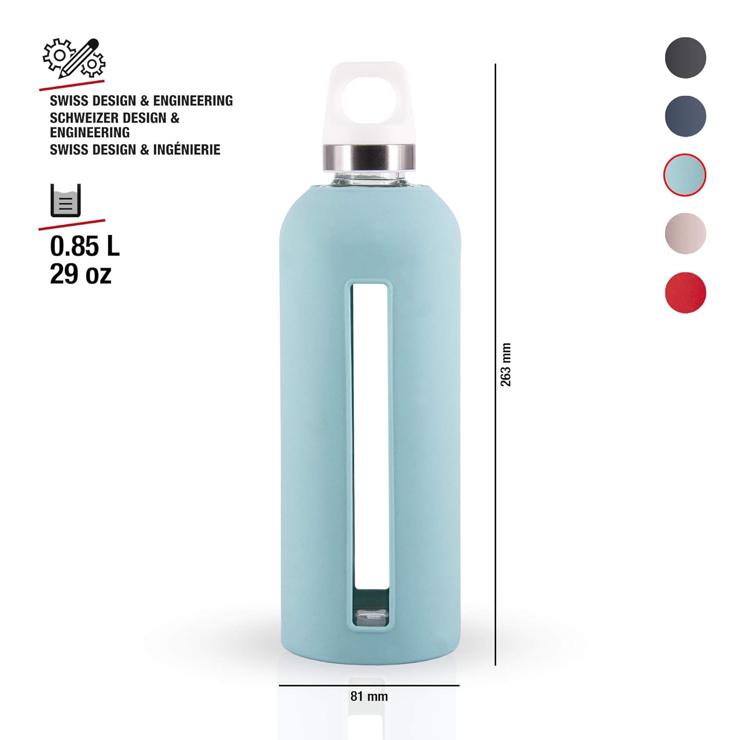 las botellas de vidrio borosilicato tienen beneficios similares a los del plástico, aunque son más rompibles y generalmente más caras. La mayorÃa tienen mangas de silicona suaves para absorber los golpes y hacerlas más fáciles de sostener, y el sabor del agua no deberÃa verse afectado.